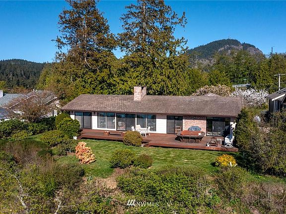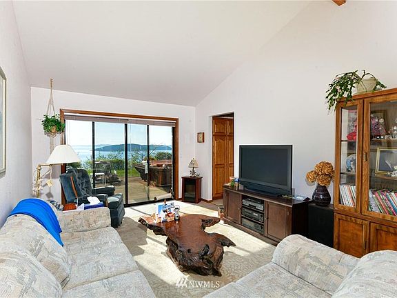 Picture yourself lounging on the deck watching the sunset over the islands & bay or entertaining on a warm summers day! Natural sunlight pours into this lovely home. Cute front porch greets you and grand brick fireplace graces the formal living room. Vaulted ceilings in main living areas including the master bedroom. Deck access from master, living room, kitchen and den. Could become open concept floor plan from kitchen to living room. Lovely landscaping and garden areas surround this home. Plenty of parking space for your boat or RV. Easy access to town and scenic back way to Whidbey Island. Don't miss this amazing home!