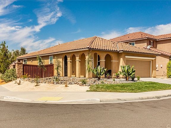 AMAZING beautiful home in the lovely gated community of Tournament Hills Oak Valley! Near wonderful schools and shopping! Easy access to the I-10 and 60 freeway. Great community with plenty of walking paths, multiple parks and a private catch and release lake just walking distance from this home. The neighborhood is active and supportive. Great open floor plan! This home comes with a 6 panel PAID solar system. Home is full of upgrades including a gourmet kitchen with granite countertops, large island, recessed lighting, and stainless steel appliances. Master bathroom has double sinks, separate soaking tub, and oversize tiled shower along with a lovely walk in closet. This home has nice size bedrooms and 4th room can be used as a an additional room or office/den. Perfect for indoor and outdoor entertaining. Tastefully new landscaping with patio cover and gazebo set. As well as an outdoor playground structure. Must preview to appreciate how well this home flows.
