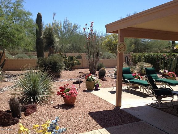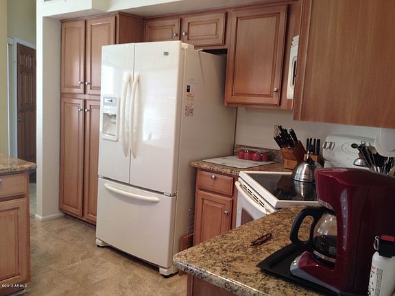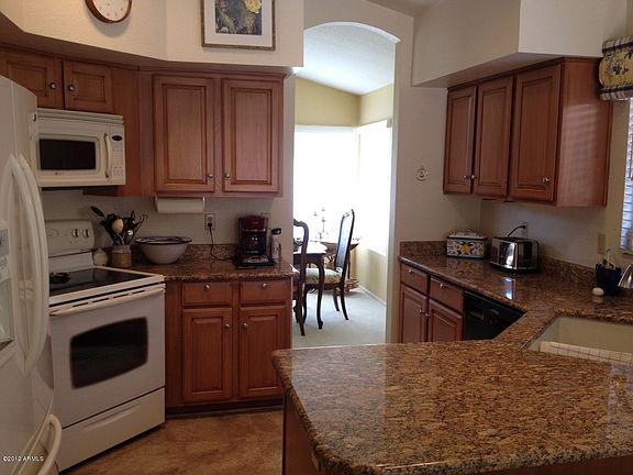 Complete info: http://13035n94thpl.ePropertySites.com - Uprgraded withTop of the line Heat pump Trane Seer 16, new water heater 2011, slide out shelves in Kitchen, sky lights in bathroom and laundry, blinds T/O, electric fireplace, kitchen floor with comfort underlayment, newer garage door opener, insulated garage door, recirculating pump, garage epoxy floor, master bath remodel, garage cabinets, granite counter tops in kitchen and wet bar, dual pane windows t/o, kitchen cabinets custom finish, custom closet interiors, mirrored closet doors, built in cabinets/desk in bedroom 3, washer/dryer included, backs to natural wash, stainmaster carpet 1 yr old, 2 optional patios added. 3rd patio was included in room extentsion at original build, 5 years newer than other homes in community, private courtyard, Not available for showings until May 3rd