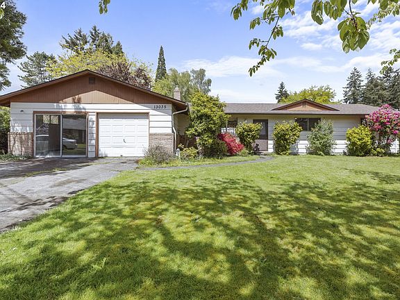 Dreaming of a mid century in popular Cedar Hills? This one level cutie on an oversized lot is ready to become your dream home. The open floor plan has spacious rooms and not only a living room but oversized family room and bonus room. Be transported to the era of Mad Men with brick fireplace surround flanked by custom wood built-ins and matching cabinets. There's a 1960's divider with a built-in planter box and offset shelves for your treasures, and the sweet dining room has a slider to the patio and fenced backyard - the perfect place to dine on warm summer nights. The kitchen is classic 60's with mint condition original cabinets and drawers, a built-in electric Kenmore range and an oversized range hood. The built in oven, original counters, tile backsplash, and original vinyl floor will make you feel like tying on an apron and cooking up an exotic jello mold! The spacious primary fits a king bed and has an ensuite bathroom. The other bedrooms have oversized closets, high ceilings, and are anchored by a large bathroom with plenty of storage. All bedrooms have oak hardwood floors - pull up the carpet to reveal more gorgeous hardwood! On the other end of the house, a HUGE bonus room - picture a pool table, bar, TV room, game room, and family room all in one! With a half bath and a door to the backyard, you couldn't ask for a better space to entertain. This side of the home also features what would be a great home office with a large sliding door to let the sun shine in and an attached garage with plenty of storage. All of this on an oversized corner lot with gorgeous, lush landscaping - fence in the front to have the biggest private yard on the block! New roof 2014. Walk to beautiful Commonwealth Lake Park. Just minutes from all the fun in Cedar Hills, Cedar Mill, and Beaverton. Welcome home!