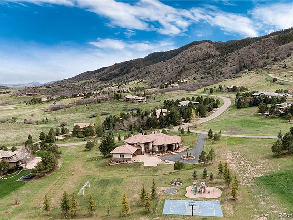 Spectacular custom built home situated in White Deer Valley in Littleton Colorado on 2 plus acre lot with sport court (official pickelball size), frisbee golf, sunken trampoline, playset, multiple decks and patios, hot tub, red rock views, and miles of trails and open space. This mountain rustic glam home is designed with modern touches, while still embracing Colorado's traditional design. Primary suite is on main floor, second full bedroom with additional full bath, vaulted ceilings, custom touches include floor to ceiling fireplace wall, a Brand new kitchen with sub zero commercial size refrigerator, Wolf 6 burner range, double ovens, custom range hood, double dishwashers, kitchen island with prep sink, walk in pantry, mini beverage refrigerator in butler's pantry area, full access to deck, custom built in storage and Pebble creek ice maker. Brand new laundry room with double washers and dryers, custom flooring, custom built in cabinetry with organizational space. Mud room area, powder room, and formal dining area with vaulted ceilings throughout, complete the main floor. Full walk out basement with wet bar area, recreation space, full bathroom and bedroom and additional work out room or office area. Loads of unfinished storage, oversized, heated 3 car garage but you can park 4 vehicles, multiple decks, patios, and fire pit areas. With new carpet, new paint, new septic, new furnace, new landscape, new driveway, new kitchen, new laundry, this home surpasses others and is exquisite in both design and detail.