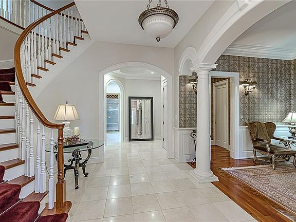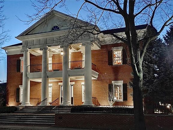 Classic Elegance, Luxurious Living, Timeless Brick Home. Greek Revival Architecture Combined W/ Custom Style, Functional Interior & The Finest Amenities throughout. Raised Ceilings, Elegant Columns & Archways, Paneled Library. Coffered Ceiling, tray ceiling & built-in. Solid Marble Entry & Cherry Hardwood Floors, Extraordinary Custom Trim Detail, 3 Fireplaces & Wine Rm. Gourmet Kitchen w/ butcher block island, Stainless appliances,hood vent & eat-in area. Master Suite w/ stunning ceiling details, sitting area w/ fireplace & built-ins. LL W/ Gorgeous Home Theater, amazing wet bar & Rec-area. The Separate,Yet Connected Carriage House Features 5th & 6th BR's. Entertain In Private Courtyard/Garden.