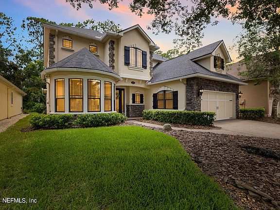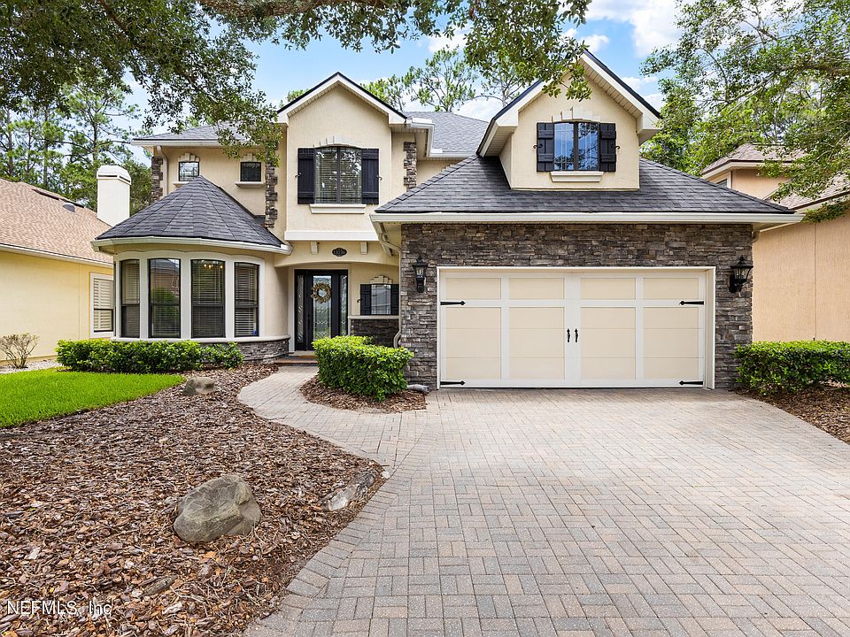 Your dream home in a serene, gated community- low HOA's! Expansive 4 BR/4 bath residence nestled in a quiet cul-de-sac, surrounded by lush trees and private preserve. Whether entertaining or unwinding, enjoy year-round comfort with your private, heated pool ideal for both summer and cooler months. Thoughtfully designed layout features 1st floor owner's retreat w/spacious walk-in closet, dual sinks, shower, and jetted tub. Second floor boasts three generous BR's, each w/walk-in closets, and 2 w/private ensuites. Large flex space offers versatility for office, home gym, game room, teen lounge, or playroom. Recent updates ensure modern convenience: a new roof ('23), hybrid water heater ('19), matching kitchen appliances ('20), pool heater ('20), and stylish lighting and ceiling fans throughout ('23). California Closets enhance the owner's suite closet, pantry, and laundry ('23). Just 5 miles from Mayo Clinic, Beaches, & I-295. Comfort, charm & convenience in a beautiful, gated setting.