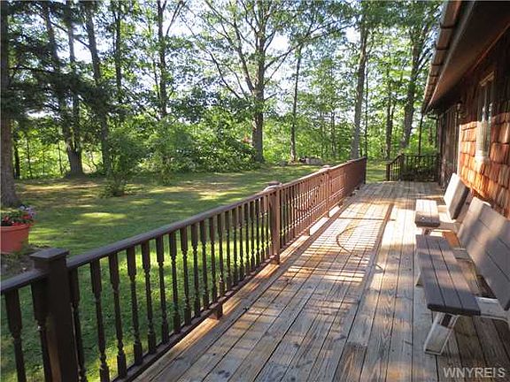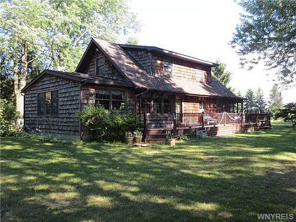 Beautiful waterfront home has been meticulously cared for by the original owners! Nestled way back off the road, this custom home was designed with the view in mind. Very private setting. Stairs lead down to the waterfront for swimming, boating or just enjoying the view on the lake. Hardwood floors, cherry kitchen, 3 season enclosed porch, flexible floor plan with dining room or family room overlooking the yard and lake. High and dry full basement with new boiler, tons of storage. Brand new roof. 2 car attached garage with finished and heated workshop or bonus space above. Call today!