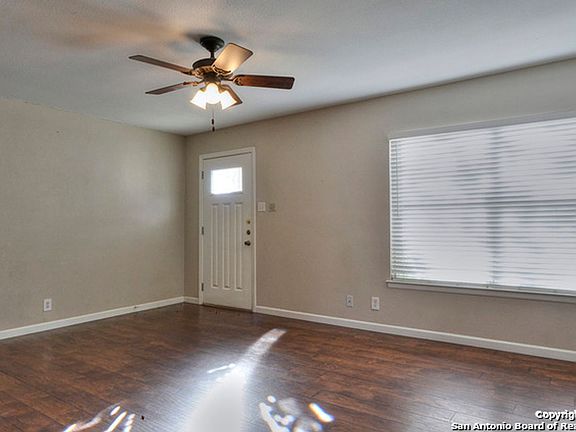 This charming one-story home in the sought-after Hunters Chase Subdivision offers a perfect balance of comfort and functionality with its open floor plan and inviting spaces. The living room welcomes you with porcelain flooring and a ceiling fan, while the kitchen boasts matching porcelain tile, updated cabinetry, granite countertops, and a spacious walk-in pantry/laundry room for added convenience. A cozy family room creates the ideal spot for relaxing evenings or family gatherings. The master suite features a generous walk-in closet, single vanity, and a large walk-in shower, while secondary bedrooms provide plenty of space for family or guests. Outside, the private backyard offers a patio slab, storage shed, and privacy fencingperfect for weekend barbecues or quiet nights under the stars. Ideally located near major highways, UTSA, USAA, Fiesta Texas, shopping, and dining, this home delivers a welcoming retreat with easy access to everything you need.