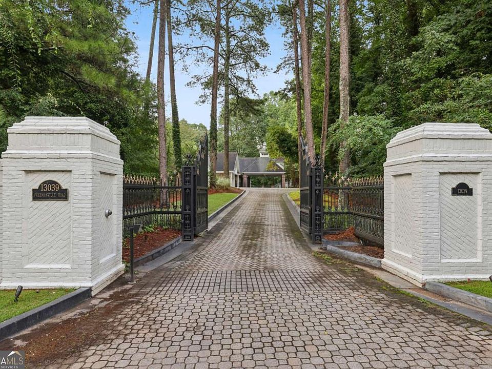 Welcome to 13039 Freemanville Road - A Private Luxury Estate in Alpharetta, GA Experience unmatched elegance and privacy at this exquisite gated estate nestled on one of Alpharetta's most prestigious roads. This luxury residence features 9 bedrooms and 10.5 bathrooms, designed with top-tier craftsmanship and custom finishes throughout. From the moment you enter through the gated drive and approach the beautifully landscaped grounds, you'll be captivated by the grand scale and timeless appeal of this exceptional home. Main Residence Highlights: Stunning Foyer with dramatic entrance and architectural details Elegant 12+ Seating Formal Dining Room perfect for entertaining Gourmet Chef's Kitchen featuring quartz countertops, custom cabinetry, gold fixtures, high-end stainless appliances, walk-in pantry, and a cozy keeping room with fireplace Luxurious Main-Level Owner's Suite with trey ceilings, a sitting area, and a spa-style custom closet Main Level: 3 spacious bedrooms / 3.5 bathrooms Upper Level: 4 bedrooms with en-suite baths including a generously sized Junior Owner's Suite and 4 full bathrooms Dual staircases for front and rear access Outdoor Living & Entertainment: Beautiful Courtyard with a tranquil fountain and an outdoor brick pizza oven 5-Car Garage with abundant storage Guest House & Studio/Office Guest House: 2-story entry, full kitchen, 2 bedrooms, 2 bathrooms, laundry Studio: Versatile space perfect for a bar, office, or content studio Wellness & Custom Features: 3 Fireplaces** throughout Infrared Sauna, Steam Room & Massage Parlor Impeccably maintained with high-end finishes and thoughtful design in every space Financing Flexibility: Seller is open to owner financing with flexible terms for qualified buyers - a great opportunity for those seeking creative financing options. Schedule your private tour today and experience the ultimate in luxury living at 13039 Freemanville Road. This one-of-a-kind estate won't last long.