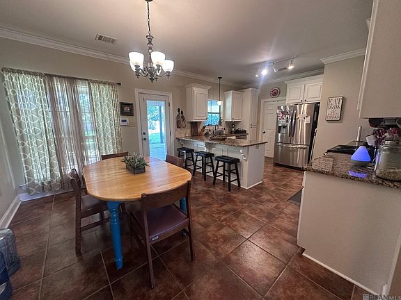 Charming Acadian-Style Bungalow on a Spacious Half-Acre Corner Lot Nestled on a generous half-acre corner lot, this delightful Acadian-style bungalow offers the perfect blend of country living with modern comforts. A large, fenced yard with mature oak trees, fig trees, and vibrant crepe myrtle adds charm and privacy, making it an ideal setting for outdoor gatherings and peaceful relaxation. The home features a thoughtful split floor plan with three cozy bedrooms, providing space and privacy for the entire family. The inviting family room boasts tray ceilings, creating a sense of openness, while the spacious dining area offers the perfect setting for family meals. The kitchen features a breakfast bar and custom cypress cabinets throughout, complemented by bronzed fixtures and neutral tones that create a warm, welcoming atmosphere. The primary bedroom offers a peaceful retreat with tray ceilings and a spacious walk-in closet. The attached primary bath features a separate standing shower and a luxurious garden tub, offering the perfect spot to unwind after a long day. Other highlights of this home include insulated relief windows on the front for energy efficiency, a large 10x15 covered patio perfect for outdoor dining or relaxing, and a convenient 8x10 container storage building for all your storage needs. This home is an ideal choice for anyone seeking a serene country lifestyle with plenty of space, privacy, and charm. The refrigerator will remain with a full-price offer. Don't miss out on the opportunity to make this beautiful, well-maintained home yours!