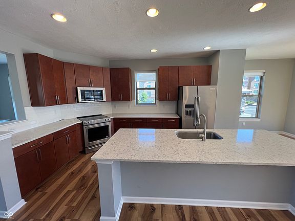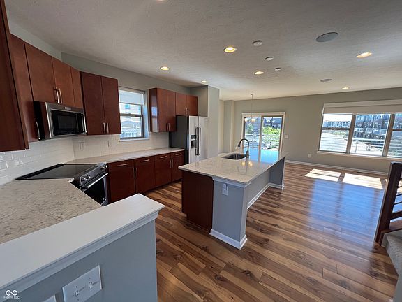 This Near New 2 Bedroom Potential 3 or 4 Bedroom END UNIT Condo with Loads of Sunlight is less than 1 Mile to Downtown/Midtown Carmel with a Plethora of Retail Shopping, Restaurants and MONON TRAIL Entertainment nearby. Easy Access to Meridian St/US 31 as well as 465. As you enter a Flexible Main Level Office/Possible Guest Bedroom greets you with a 1/2 Bath and Nearby Oversized 2 Car Garage. Upstairs includes the Warm and Cozy Great Room Fireplace with Nearby Center Island Kitchen, Breakfast Nook and Flexible Dining Area. The 3rd Level Living Includes a Flex Loft/Possible 3rd Bedroom, 2 Large Bedrooms Plus 2 Full Baths Highlighted By the Owners Suite with Luxury Bath and Tons of Walk In Closet Space. Ready for a End of July or Possibly Earlier Move in Date.