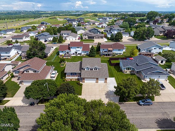 This very well-maintained move in ready 2 story home is located in a great NE Mandan area with convenient access to the Interstate, shopping and the new Middle and High Schools. The home offers great curb appeal with a welcoming maintenance free front porch and dormer windows. The foyer opens into a spacious living room. The large kitchen has plenty of custom oak cabinets, granite counters, tile backsplash and newer stainless appliances. The dining area has patio doors leading to the maintenance free deck and patio area. The living, dining and kitchen all have solid hardwood floors. Just a couple steps down is a family room with wide plank acacia engineered hardwood floors, gas fireplace and built ins. There is an updated half bath with tile floor and walls and vanity with granite counter. The laundry area is located just off the garage. The upper level features the desirable 3 bedrooms including the primary ensuite with bath and walk in closet. The main bath has been updated with tile floors. The additional bedrooms are spacious, and one offers a window seat with storage. The lower level has another family room, large bedroom with walk through to the updated bathroom, storage space and utility room. The attached garage has 1036 square feet with a tandem 4th stall that has storage cabinets and a great walk-up attic storage area. The garage has epoxy floors and is insulated. There is an additional parking pad! The shingles were replaced in 2023 and there is a newer furnace and water heater.