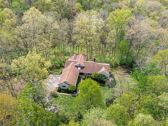 Spectacular wooded views from multiple levels in this unique, transitional cedar home on a parklike five-acre lot. Private location, yet easy access to downtown Cincinnati. Ideal home for entertaining with numerous large living areas throughout, including great room on main level and lower level walk-out family room with wet bar. Spacious fully equipped eat-in kitchen with expansive pantry cabinets. Bonus room on top level has gorgeous inlaid wood floor, bead board ceiling, and opens to its own private balcony. Accessed from the kitchen, a delightful solarium boasts wonderful Gatlinburg-like vistas from multiple windows, ceramic tile floor, and gas fireplace with wood mantle. Extensive decking, screened porch, and patio. Desirable 3-car garage and huge 43'x14' workshop with convenient access to exterior. Includes back-up whole-house Generac generator. Additional acreage available.