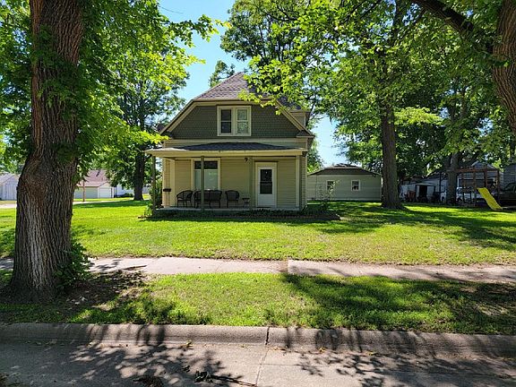Charm and tranquility on large lot in beautiful Gothenburg. Large lovely trees surround. This wonderful 3 bedroom, 2 bath home with hardwood floors and 2 garages. There is a partial basement for storage with the laundry on the main floor. Washer and Dryer included. A lovely front porch for relaxing and brick patio out back for entertaining.