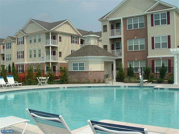 Regularly priced at $1, 563.00, rent is now only $1, 395.00 -- a savings of $168 per month. This luxurious Cranbury model apartment, in Camelot at Cinnaminson Harbour, combines living room and dining room, for a total of 19'1" x 17'7" plus patio. Two bedrooms, two baths, first floor unit, with 1, 150 sq. ft. of living space. Amenities include hardwood floors, Berber carpet in bedrooms, ceramic tiled kitchen and baths, full size washer and dryer, gas range and beautiful cabinetry. Big bedrooms, master has private bath. Wired for high-speed internet/cable. A short walk to the River Line, with connections to Philadelphia and New York City (and soon Atlantic City). 24-hour emergency service and onsite management. The club house is 3, 700 sq. ft., and includes a pool, gym, and the business center. NEW unit -- clean, pristine delivery!
