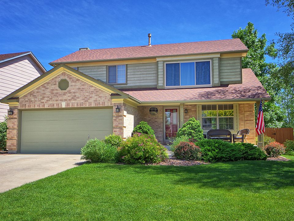 This home is a must see! It has beautifully maintained landscaping and amazing views in Cheyenne Meadows South. It features 4 bedrooms and 3.5 bathrooms. The large, eat-in kitchen has stainless steel appliances, tile counter tops and wood laminate flooring. There is plenty of space for a table and/or an island. All of the upstairs bedrooms include walk-in closets and the master has a 5-piece bath with a jetted tub and additional closet. Additionally on the upper level, you will find an office (Or 5th bedroom) with french doors. Don't forget to walk out back as we have a gate to the greenbelt. In the finished basement, you will find a large 2nd family room with tons of potential as well as a nice-sized 4th bedroom and a full bath. This home also has central A/C and a gas fireplace! Garage has keyless entry.
