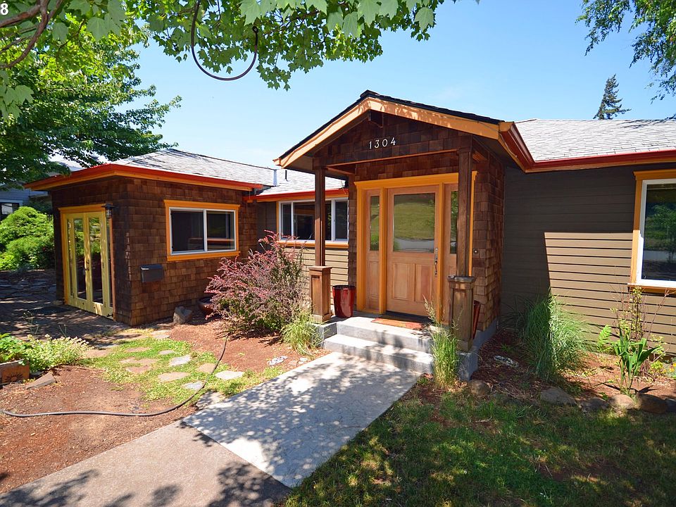 Recently remodeled home in the heart of Hood River. 3 bed two bath upstairs, with rentable 2 bed, 1 bath ADU downstairs. Wood floors, classy trim, heated tile floor in master bath, and a wood-burning fireplace sets this home apart. Mature landscaping with well designed outdoor spaces and peeks at the river. Large R3 corner lot with room to build a garage if desired. This home has lots of storage.