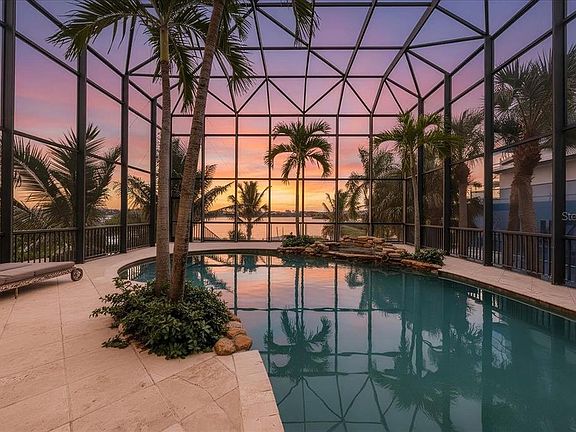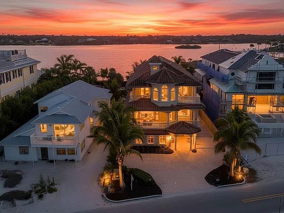 Auction Property. LUXURY REAL ESTATE AUCTION on-site on Friday, February 27, 2026, at 1:00 PM. Previews begin on Saturday, February 7th, and will run every Saturday and Sunday from 1:00 to 4:00 PM until the auction. Private appointments are available; please call for details. Designed by renowned architect George Merlin and built in 2006 by Christner Brothers to hurricane-resistant building code, this home rests securely on concrete-driven pilings and exudes unparalleled quality. Watch the sunrise over the Intracoastal Waterway from the deepwater boat dock and lift. Spend the afternoons on your private beach along the sandy shore of the gulf where spectacular sunsets are almost guaranteed. Inside nearly 8,000 square feet, five bedrooms with en suites, nine baths, formal living, family and sitting rooms, dual private offices, den and a theater room provide seemingly endless enjoyment. Crown molding, trayed ceilings, travertine flooring, three fireplaces and Yoder Brothers custom cabinetry exude elegant touches throughout. An elevated lagoon-style swimming pool is great for a cool dip or relax in the heated spa and outdoor fireplace on a chilly evening. The gourmet kitchen is large enough to host an impressive dinner party and gather with family and friends. Casey Key is a place like no other, where residential homes line the shores, absent of commercial building and high-rise condominiums. Development is restricted to single-family homes, yet all conveniences of shopping and restaurants are minutes away. Private and commercial air travel are easily accessible. Sports and cultural entertainment enthusiasts will find golf, tennis, theaters, music and more, just a few miles away in nearby Venice and Sarasota. There’s something for everyone in this gulf to bay resort-style home.