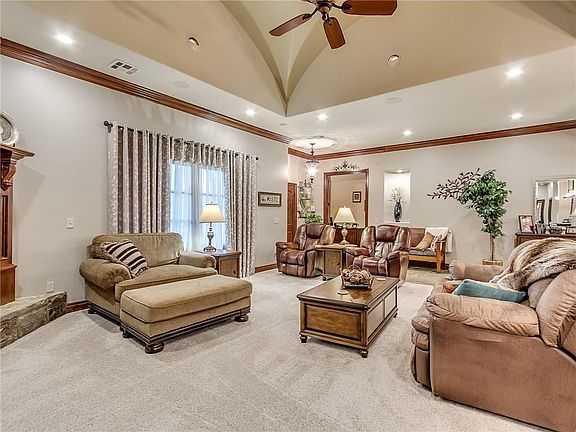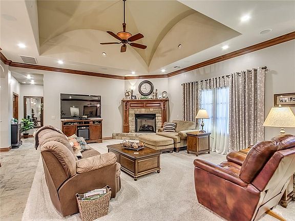 Breathtaking patio home with deco ceilings and crown molding. Gas log Fireplace in living room. Open floor plan. Large master suit (handicap accessible) with walk-in safe room and large master closet with built-in chest, huge walk-in master shower & jetted tub. Nice sized study off foyer with french doors. High end finish-out with granite counter tops, and various ceiling heights, surround sound, 90% efficient gas furnace, tank-less water heater, maple cabinets, low-E windows, handicap access, landscaping, sprinkler, Energy Star Certified, water softener, covered front porch, large covered patio with surround sound, spacious closets. security system. 3 car garage with shelves, abundance of storage. Sprinkler system is hooked up to HOA. Lawn care and water for yard provided by HOA. $100.00 per month association fee. New dishwasher 2015. New living room carpet 2014.