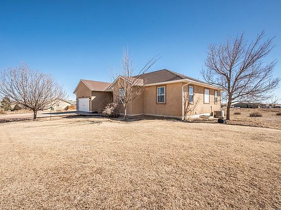 Beautiful Northside Pueblo Rancher with a Walkout! This gorgeous home is situated on a 1 acre corner lot with close access to the restaurants and other amenities of Pueblo West. As well as a 7 minute drive to get to Interstate 25. As you approach the home you will be greeted by the large front lawn with mature trees and shrubs. Large open floor plan with the living room, kitchen and dining room. Main level has breathtaking hardwood floors throughout. Kitchen has a large island, pantry and stainless steel appliances with direct access to the back deck. Dining room has beautiful large windows allowing a full view of the property and plenty of sunlight. The 3 main level bedrooms are located to your immediate left. The primary bedroom is very spacious with carpet floors and a large attached bathroom. The primary bathroom has tile floors, dual vanity, a large soaking tub, walk in shower and large walk in closet. The other two bedrooms are both carpet with their own large closets. They share a full bath with tile floors, single vanity and shower/tub. The laundry is located to the right. It connects directly to the large two car garage and can act as a mudroom with its tile floors. As you head downstairs you will find another finished bedroom. The rest of the walkout basement is unfinished and ready for you to put your own personal touch on it. With the walkout patio it will be a great place to entertain your guests. Don't miss out on your opportunity to own this amazing property.