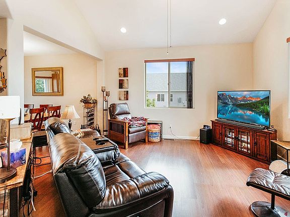 Immaculate newer home built by Ridgeline Homes on corner lot with open concept living, dining and kitchen. Vaulted ceiling and large windows in the living room with views of the community park across the street. Laminate flooring spans the great room with kitchen island with room for bar stools. Sliding glass door to back patio and southern windows providing natural light. Granite countertops in kitchen, stainless appliances, pantry. Master bedroom has vaulted ceiling and two large windows for more natural light and a walk-in closet. Master bathroom has step-in shower with sliding rain glass door. Laminate flooring continues down hall to master bedroom and one additional bedroom. The third bedroom with carpet. Tile flooring in both baths with a tub/shower combination in main bath with another sliding door. Large back Trex deck patio with pergola and great views of Mt Sneffles! Fully landscaped with automatic drip system, raised beds for flowers or gardening, fenced back yard and storage shed. Lovingly cared for by this original owner.