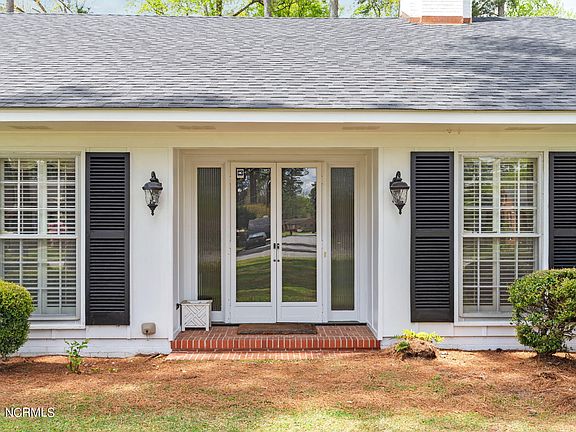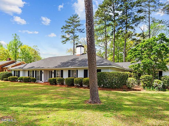 Exceptional opportunity to purchase your next home in Kinston overlooking the golf course of the Kinston Country Club! This 4-bedroom, 4 full bath home is a must see and has so much to offer! The timeless floor plan consists of a formal living room and dining room along with a cozy family room showcasing beautiful parquet floors, gas log fireplace and built-in wood shelving. One of the best features of the house is the large, relaxing sunroom off the back of the house lined with oversized windows with picturesque views of the Kinston Country Club golf course. The kitchen boasts a functional layout with updated appliances, pantry along with a walk-in wet bar. Downstairs includes the expansive master suite downstairs with French doors leading out onto the sunroom and two guest bedrooms, with plenty of storage spaces throughout the first floor. Upstairs consists of one guest bedroom with an ensuite bathroom and large walk-in closet. Just adjacent to the 2nd floor bedroom is a multipurpose room that could be used for crafts or a home office. Two car attached garage off sunroom with a spacious backyard that has a private bridge leading to the golf course. Exterior trim and shutters of the home have been recently painted, new architectural shingles on the roof in addition to the flat roof over sunroom which has been recently replaced.
