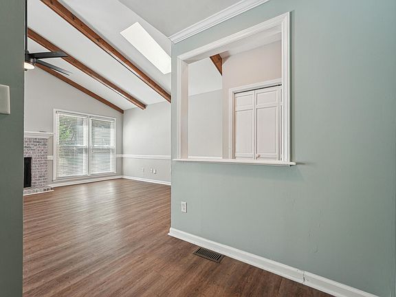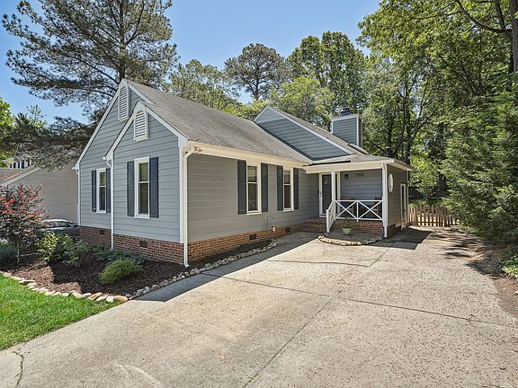 Welcome to a charming 3-bedroom, 2-bathroom cottage-style ranch nestled in the desirable North Ridge Villas community of North Raleigh. This move-in ready home features thoughtful custom upgrades and a light-filled layout that blends warmth and functionality. Inside, you'll find vaulted ceilings with exposed wood beams and skylights that create an inviting and airy atmosphere. Durable LVP flooring flows throughout the main living areas, with ceramic tile in the bathrooms. Enjoy a beautifully updated bathroom, fresh interior paint in the bedrooms and baths, and a versatile nook off the family room—perfect for a home office, reading corner, or mudroom setup. Step outside to your own private retreat with a fully fenced, landscaped backyard and a cozy patio ideal for relaxing or entertaining. All of this just a short walk to the community pool, pickleball and tennis courts, and playground. You're also within walking distance to shopping and dining—offering a perfect mix of lifestyle and location. Recent upgrades include: a brand NEW HVAC system, updated ductwork, gas water heater, electrical enhancements, and a fully encapsulated crawlspace for energy efficiency and peace of mind.