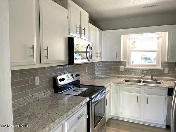 Recently renovated home on a Cul de sac located in the heart of Jacksonville close to schools and shopping. LVP flooring in the main living areas, carpet in all the bedrooms. Living room has a fireplace with a decorative mantle and a ceiling fan. The Kitchen has upgraded stainless steel appliances and lots of cabinet and counter space. Laundry/Mud room. The Owners suite has a large walk-in cedar closet and a fan. The other bedrooms have fans and ample closet space. This home has an attached garage, a covered front porch and a patio. Large, fenced back yard with a patio. Large, wired workroom/storage shed. Easy commute to all area military bases.