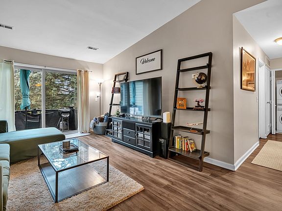 Welcome to your move-in ready condo in the sought-after Chantecleer Lakes subdivision! Inside, you'll find an inviting open concept layout with wood laminate flooring throughout. The spacious living room features a sliding glass door leading to a private shaded balcony, perfect for relaxing outdoors. The kitchen is equipped with stainless steel appliances, ample cabinetry, and an adjacent dining area. The primary bedroom offers a generously sized walk-in closet for all your storage needs. For added convenience, there's a stackable in-unit washer/dryer. You'll have one reserved parking space, with additional guest parking available throughout the community. Enjoy the fantastic on-site amenities, including a pool, clubhouse, sauna, and exercise center. Plus, the location is ideal, with Redfield Commons Park and McDowell Forest Preserve nearby for outdoor activities. Just minutes away from I-88, downtown Naperville, shopping, restaurants, and within the highly acclaimed school district 204. Your assessment covers pool access, clubhouse use, lawn care, snow removal, garbage removal, and water. Please note that rentals are not allowed. Don't miss out on this fantastic opportunity - schedule a showing today and welcome to your new home!