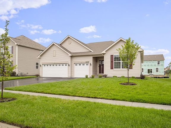 READY NOW!!! Ranch home with the most impressive features in the Clubhouse Community of Lakewood Prairie with Acclaimed Minooka 202 Schools!! This beautifully designed ranch begins with a welcoming entry showcasing a coffered ceiling and tall 9ft ceilings throughout. Luxury vinyl plank flooring runs through the entry, kitchen, family room, laundry, and halls. The sought-after open kitchen with all GE stainless steel appliances, pantry, quartz countertops beautifully accent the 42" white cabinetry and the oversized island is the perfect spot for any gathering. A large family room with plenty of windows overlooking your covered patio is conveniently connected to the kitchen with added windows in the dining area. Inviting owner's suite has the perfect walk-in closet, walk-in designer shower & stunning raised height double bowl vanity. This home has also been upgraded with a full lite door. Open staircase with stained oak and iron spindles lead to the basement. Two large guest bedrooms, and additional full bath! With energy efficient features and a fully dry-walled 3 car garage, you've found it all! Well landscaped design per plan with sodded front and seeded rear. Come check out the established Lakewood Prairie Community, where everything is included and every room is connected with 10X faster WIFI connection(CAT 6) Lutron WIFI Lighting! The Ridgefield Design, near 2200 SQFT. Photos of another completed and furnished Ridgefield to show flow and ideas; elevation/color c