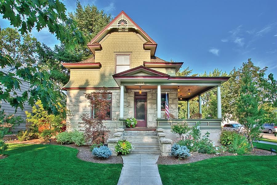 Beautifully restored and historically significant Queen Anne Villa. Elegantly set on the corner of Eastman and Harrison, the grounds encompass 2 city lots, providing a spectacular and private backyard setting. Prominent curb-appeal features a wrap-around front porch, Table Rock quarried sandstone construction and fancy cut wooden shingles on the second story. Remarkable 112 year-old woodwork & paneling grace the pristine interior. Additional interior finishes include: Original paneling and staircase in the parlor-style entry, wood wrapped windows, characteristic wood floors, paneled wainscoting in dining room, and a main-level bedroom with a full bath. A restoration quality gourmet kitchen is designed to enhance the character of the building-era, while providing modern conveniences with premier commercial-grade appliances. A luxurious upper-level provides a sitting room with fireplace, a master retreat and an additional bedroom or office. The upstairs bath suite includes a large jetted tub, spa-style shower, & walk-in sauna. A pristinely finished basement level features heated tile floors, family/media room, built-ins, private bedroom/office & a full bath. Exquisitely landscaped grounds feature a trellis covered paver-stone patio, fenced lawn, and vibrantly blooming landscape. 3 car garage + storage.