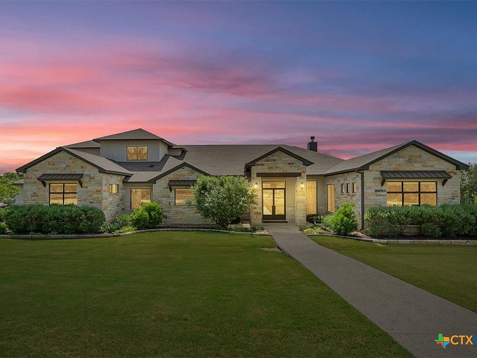Welcome to your luxury custom built home in the heart of Central Texas! This incredible property features 6 bedrooms, 6 full baths, a 4 car garage, along with a host of other amenities such as a central vacuum, safe room, and more. Enter your property through a set of modern oversized french doors to be warmly greeted by your open concept family room. This area features a floor to ceiling fireplace as the focal point drawing your eyes towards a beamed ceiling and the incredible craftsmanship of the home. Built in shelving and storage bookend your fireplace and large picture windows on the rear wall flood the room with natural lighting. Engineered light hardwood flooring also add to the open bright aesthetics. The kitchen area is to your left and features custom cabinetry for storage, solid countertop prep space on counters and the island, as well as a professional grade Wolf brand dual fuel range for the culinary chefs. Tucked away off of this space is a beautiful and functional butlers pantry to aid in your meal prep and food storage needs. This area includes a set-in wine fridge and pebble ice machine. Moving on to through the home you'll find additional living areas, an office with built in shelving, and a private theater room for entertaining. In the master suite you'll notice wrap around windows for more natural lighting and automated window shades for privacy. The window features an incredible view of your property and you have private patio access as well. The ensuite includes a garden tub and walk in shower as well as an oversized master closet. Secondary rooms throughout offer additional space for family, guests, hobbies, and storage. In the rear of the property you'll luxuriate in your spa and lighted infinity pool. Enjoy your covered patio, lighted tree oasis, outdoor fireplace, or take in a game of bocce with your private court. This home has so much to offer so call today to schedule a private showing of your future home!