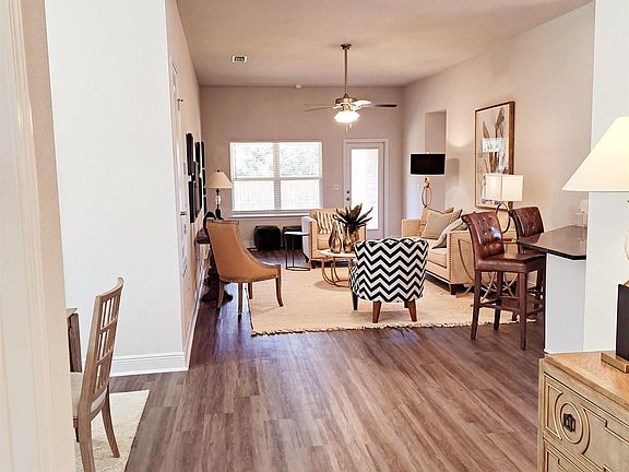 Beautiful Beaches are in your near future! Just 20 minutes to the most beautiful beaches in the world. This home is located in the center of Foley, with shopping, entertainment, and easy 2-minute access to the beach express or Hwy 59. Five minutes from amusement parks. Just minutes from the High-school, Middle School, and Elementary Schools. This is a 4-sided beautiful brick home featuring a covered back porch, 4 Bedroom 2 Baths with breakfast nook featuring granite countertops and stainless appliances in the kitchen. The kitchen overlooks the large great room with vaulted ceilings, a grand dining room, and a foyer entry. This gorgeous primary has a lovely tray ceiling with extra flush mount lights; a walk-in closet and the primary bathroom features upgraded granite countertops, a separate water closet as well as a garden tub with a separate shower. Luxury vinyl plank flooring throughout with carpet in the bedrooms. The seller also provides Termite protection with a renewable bond. Premium hurricane fabric shields. Digital multimedia box.