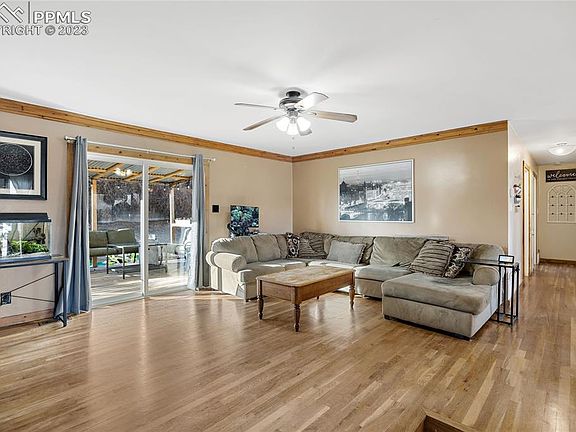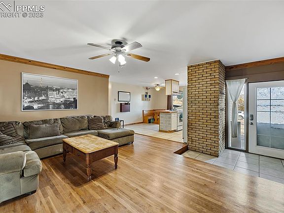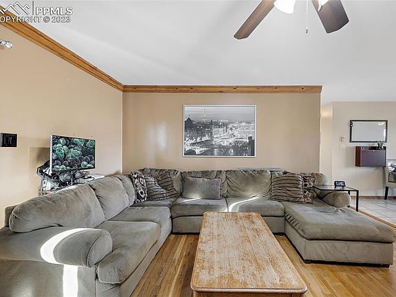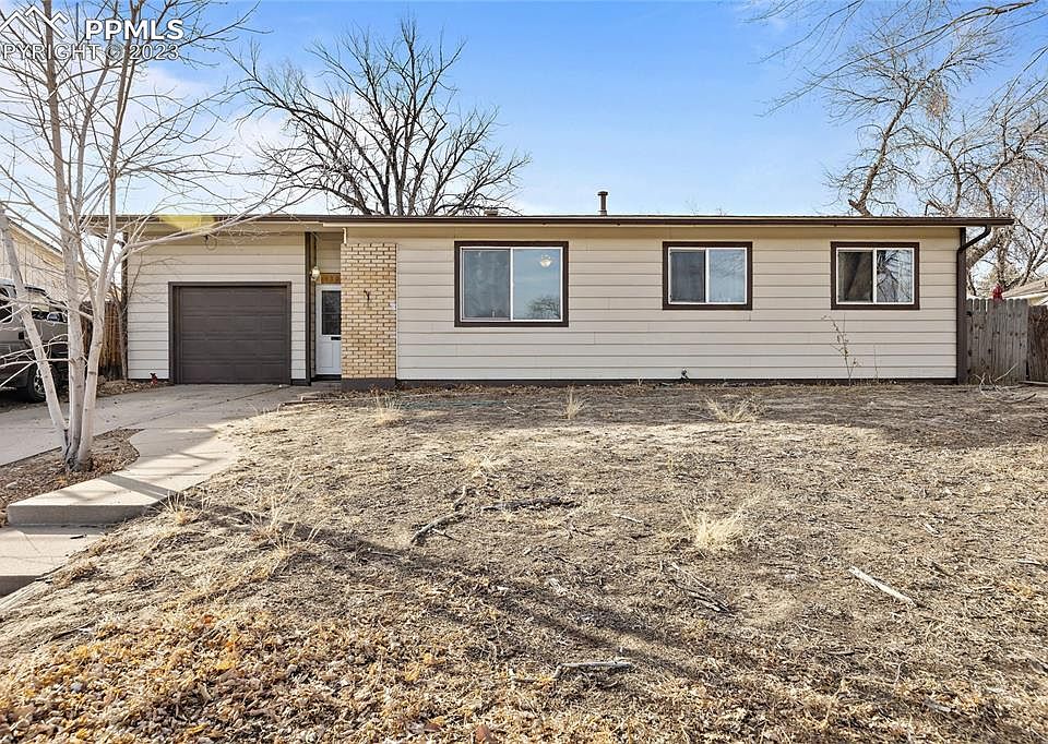This three-bedroom, two-bath Widefield rancher is move-in ready and thoughtfully updated. This 1,163-square-foot home features a spacious living room with gorgeous hardwood floors and crown molding. Stay comfortable throughout the sunny Colorado summers with AC and ceiling fans. Cook to your heart's desire in the country kitchen complete with an island cooking area, ceramic tile, a beautiful backsplash, new glass-top electric range, and a dining area. The primary suite includes an attached bath. The home features two more bedrooms with hardwood flooring. The second bathroom shares space with the main-level laundry that features built-in storage above. Let the fresh air in with a lovely sliding door opening right to the backyard. The home also has a brand-new water heater. Enjoy the outdoors on this 7,400 square-foot lot complete with mature trees and a covered wood patio. Plus, never run out of space for your outdoor equipment with the handy storage shed!