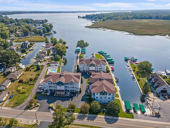 Ready for condo living? Enjoy maintenance-free lake living at its finest in this absolutely gorgeous, updated 3-bed, 2-bath Macy's Pointe condo, situated in one of the prime locations on Lake Wawasee! Completely move-in ready, this 2nd-floor condo offers peaceful views of the beautiful lake and wetlands from your own expansive open patio, which faces a wide, clean channel. This stunning unit has everything you need: additional storage, an elevator, assigned pier slip, and access to a lakeside pool. As soon as you walk in the door, you’ll notice how fresh and clean the well-appointed space feels, with new paint, flooring, and luxury light fixtures giving everything a glamorous glow. The open-concept living, kitchen, and dining area faces the water and is bathed in natural light—featuring adjustable custom blinds. The kitchen boasts custom white cabinets, beautiful quartz countertops, a large island, and stainless steel appliances—all opening to a wall of windows and a cozy living room. Sliding doors lead to a large patio with fabulous lake views, making it the perfect spot to entertain or relax. Bedrooms are generously sized with ample storage throughout. The primary bedroom features a ceiling fan, a large walk-in closet, and an en-suite bath. From lazy summer days at the pool to leisurely strolls on the Syracuse-Wawasee Trail, you’ll have easy access to it all. Furniture is negotiable outside of the sale! Conveniently located near The Frog Tavern, Louie's Bar & Grill, Lakeside Coffee, a grocery store, and shopping, with Oakwood Resort and restaurants within walking distance. Parking is a breeze with a 1-car garage across the street, an additional dedicated parking space, and plenty of visitor parking available. Ideal as a vacation home, for entertaining, or for the ultimate lake enthusiast, this condo offers so many amenities and even welcomes your furry friends. Some opportunities are too good to pass up—don’t miss out on this one! Pier #676-005C.