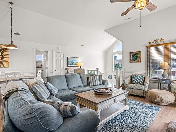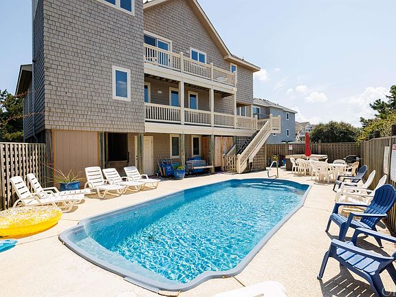 1304 Sandcastle Dr, Corolla-Welcome to the last semi-oceanfront house, before the 4x4 area, located in the Villages At Ocean Hill on the paved road in Corolla. This updated semi-oceanfront home for sale in Corolla has amazing views and generates excellent rental income! Welcome to “Smooth Sailing.” As one of the northernmost homes in Corolla, this unique 6-bedroom 6.5-bath home in the Villages at Ocean Hill is located on the very north edge of Corolla's paved road, just before the 4x4 beaches, no 4WD needed to enjoy these scenic views. In this ultimate coastal retreat, you'll enjoy the beautiful Atlantic Ocean and conservation land views from the elevated Ships Watch, and privacy galore with the fenced-in pool area. Easy beach access directly across the cul-de-sac, and local attractions such as the Currituck Lighthouse, Corolla Adventure Park, shops and restaurants, sound-side nature trails, and the Whalehead Club in Corolla Village are only minutes away. The owners have taken meticulous care of this home, proactively updating all floors to either LVP, tile, or fresh carpeting in order to create an updated look, yet highly durable and easy to clean. Soak up the sun in the private pool area or lounge in the spacious hot tub. Several decks equipped with poly-wood chairs offer plenty of space for relaxing comfortably outside. Designed with a reverse floorplan layout – these views are something you need to experience firsthand! The great room, updated kitchen, and dining are on the top level. The kitchen boasts stainless steel appliances and tasteful quartz countertops. The top level is also home to an ocean-view ensuite bedroom, plus an additional half bath. On the mid-level you’ll find four more ensuite bedrooms and a large deck with ocean and lighthouse views. The first level is equipped with a game room with foosball table, wet bar and full-size fridge, queen sleep sofa, and has easy access to the pool area. A full bath and the final bedroom (with pyramid bunk bed) are also located on the bottom floor. If you are looking for a home for sale in Corolla look no further than "Smooth Sailing".