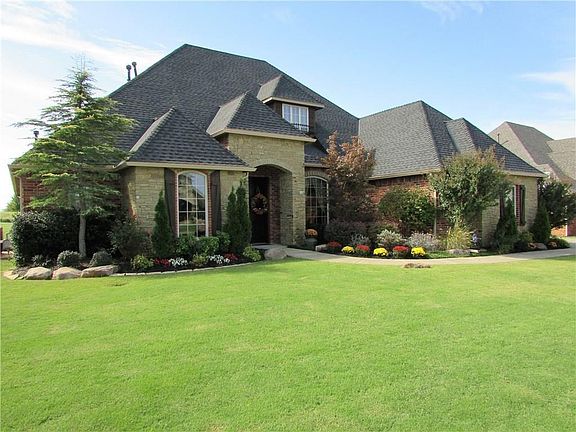 Stunning home on beautiful Cobblestone Creek Golf Club just off the second hole tee box, this home is an incredible escape from the hustle and bustle of the city yet minutes to the University of Oklahoma campus. Gorgeous stained concrete floors greet you as you enter this home. Designed to take full advantage of the views to the golf course the kitchen, living and dining rooms are all open to maximize the scenic views. 3 secondary bedrooms plus an office give everyone their own space. The master bedroom is more than a bedroom but rather an escape that features a beautiful stacked stone fireplace. Upstairs is a full bed, full bath and media/bonus room for the big game, highlighted by a whole-house speaker system. Outside, the entertainment options are limitless thanks to a built-in grill and a massive brick fireplace for year-round entertaining. Campus property without the campus price! See it today!