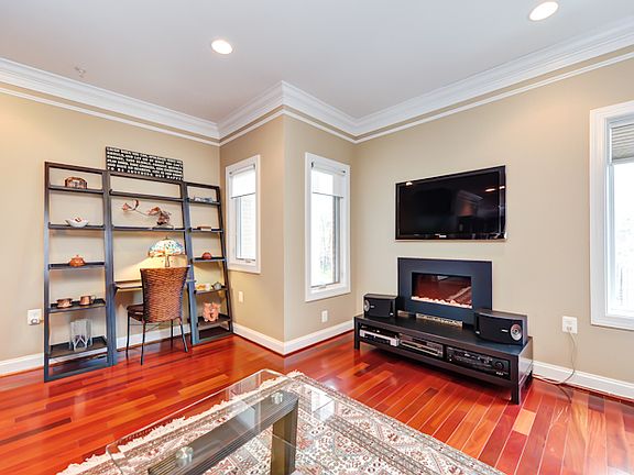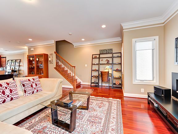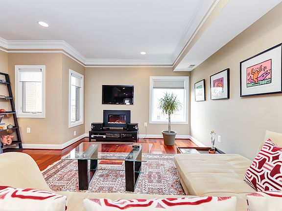 Gleaming hardwood, crown molding, recessed lighting. High ceilings + open floor plan. Beautiful finishes. Spacious main floor w/ flexible LR/DR + huge kitchen (granite, steel, breakfast bar) + balcony. Generously sized BRs. Master suite w/ en suite BA. PRIVATE rooftop deck w/ skyline views.