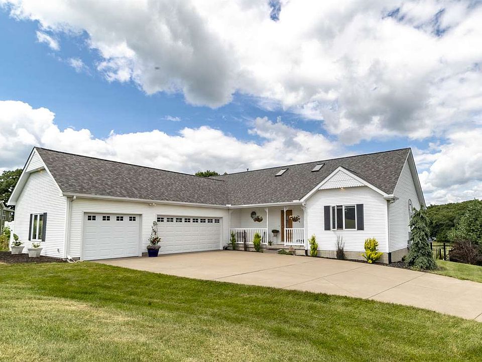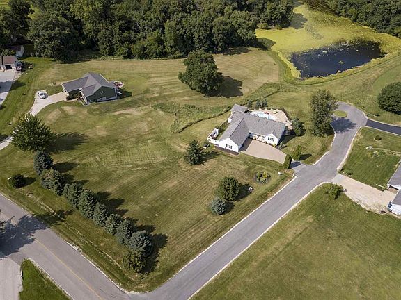 Remarkable lake view homeownership opportunity in Fyre Lake Subd. Stunning ranch with a walk out basement, pool, hot tub, gazebo, deck, lake view, 3 car attached garage, and more. Upon walking in you'll be greeted by cathedral ceilings, open floor plan, wood floors, barn door, gas fireplace with granite surround & hearth. Lower level has been meticulously designed for entertaining friends- indoors and out. Family room w/ daylight windows is currently being used as a home theater, recreation/bar area, and a secret wine room! Back half of the basement is being used as a home gym, art/ den room, full bathroom. Backyard is fenced in, kidney shaped pool with water features, hot tub, gazebo, and landscaping throughout. Property is located on a 1.25 acre lot, split master bdrm floor plan, main level laundry, Fyre Lake offers: 3 private lakes- stocked, swimmers beach, boaters cove, tennis courts, park, and an additional amenity, Fyre Lake Golf Course. Call for your showing & list of updates.