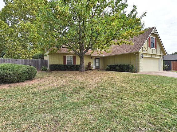 Fourth bedroom could be a game room or theatre room. Large landing at the top of the stairs could be a second living or office. Covered patio and shaded backyard great for entertaining. Shed in back is wired for electric but needs a new floor. Could be a shop or a playhouse. Newer HVAC (2018). Newer Hot water tank (2019) . Conveniently located near Indian Springs Sports Complex , Walmart and the Creek Turnpike.