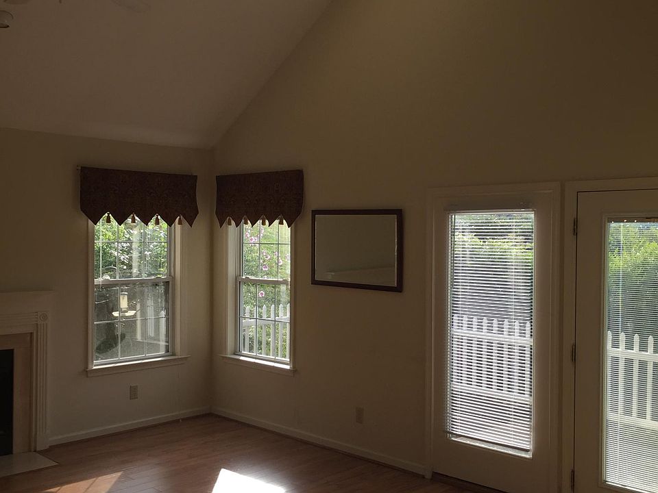 Very sunny, beautiful end unit with plenty of light. Cathedral ceilings and skylights. Two car driveway beneath mature pin oak. Master bed on ground floor with private full bath with double sinks. Small fenced in yard with mature greenery all around. Attic storage. Tenant pays electric and cable.
