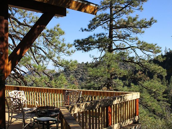 Please – By Appointment Only Secluded forest beauty nestled in the middle of the Los Padres National Forest mountains Pine Mountain Club is one of Southern California's most striking residential communities offering four seasons, enjoyable full-time living and relaxing weekends. A private community, PMC offers a country club, PGA-rated 9-hole golf course, swimming pool, tennis courts, equestrian center and catch and release fishing at Fern Lake. Surrounded by old forest, endless hiking trails, abundant wildlife and blue skies, PMC is only 1/2 hour off Hwy I-5 (one hour S of Bakersfield/one hour N of Santa Clarita). MUST SEE!! Situated on one of the most private lots on the mountain, this home is located above a quiet cul-de-sac and boasts 360 degrees of spectacular scenic views including the snow-capped Sierra Nevada Mountains! Enjoy these incredible views from 1,200 sq ft of Trex decking and 700 sq ft of over garage decking which surrounds ¾ of the upper level of the home and also from the lower level which has a 400 sq ft patio located off the games room. One of a kind, custom built cement home which uses “insulating concrete forms (ICF)” for building both foundation and above-grade walls. Complete exterior cement board siding. Beautiful and charming with a great open floor plan, the main floor has vaulted T&G pine ceilings, Galleria ceiling fans and four skylights. Open living room and dining room has 6 large picture windows, a 12 ft bay window and an efficient Vermont Castings wood burning stove. Forced air heating throughout. In addition, the dining room skylight has an air intake which can circulate warm air from the wood burning stove throughout the home as well. Beautiful kitchen with granite counters and large oak cabinets, Viking Professional propane stove with automatic re-ignition dual burner convection, refrigerator, dishwasher and large pantry. All appliances are stainless steel. Upstairs has 2 large bedrooms and two full baths. The master bedroom has vaulted ceilings and an ensuite bathroom with a jetted bath tub, walk-in shower and separate toilet area. All three bathrooms have travertine tile counters, showers and flooring and Kohler fixtures. Downstairs has another 2 large bedrooms, a full bath and a large games room with a pool table, a bar and many large picture windows. All 22 Milgard windows have a lifetime warranty. 96 sq ft laundry room is located on the lower level and has a Bosch tankless water heater and washer/dryer. Large 2 car garage with built-in work bench. Future “Mother-in-law” suite over garage is prepped for construction including installed windows and door cut-out. *All Furnishings Included With a Full Price Offer*