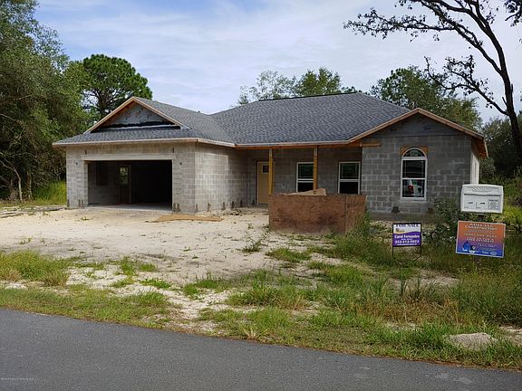 BRAND NEW HOME!! Located in the desirable Royal Highlands area in Hernando County. This 3 bedroom, 2 bath, 2 car garage features an open concept floor plan w/9' ceilings, cathedral ceiling in living room and ceiling fans throughout. Kitchen includes white shaker style cabinets, granite counter tops, stainless steel appliances. L shaped center island w/pendent lighting, double back door w/interior blinds and beautiful engineered vinyl plank flooring. Master suite includes walk in closets, master bath w/large walk in shower, double sinks, linen closets and ceramic tile. Also included - Spacious laundry room w/garage entry, central air, sprinkler system and Much More! Ready to move in this Fall 2020!!