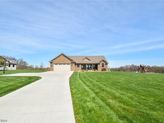 Welcome to serenity in this stunning all electric, open concept Ranch home on 2 acres, located in Beaver Local School District. The homes long pristine driveway, including basketball court, brings you to your cozy covered front porch looking over your wide open front yard, and the Breathtaking views of the surrounding hills. The Expansive open floor plan includes foyer, living, dining and kitchen spaces! Great room features hard wood floors, vaulted ceilings, and a floor to ceiling electric fireplace. Open kitchen features a large island with granite counters, a 5x5 walk in pantry, and dining area with sliding glass doors leading to the brand new Trex deck, and large fenced back yard. Private primary suite has hardwood flooring, walk in closet, and private full bath! On the other side of the home you found two nice size guest room with plush carpet, and a shared full bath. the first floor continues with office, 1/2 bath, and 1st floor laundry. In addition to the first floor head downstairs to a huge beautifully finished Rec room with LVT flooring, and a large 4th guest bedroom. New radon remediation system installed in basement. Don't miss this peaceful opportunity!