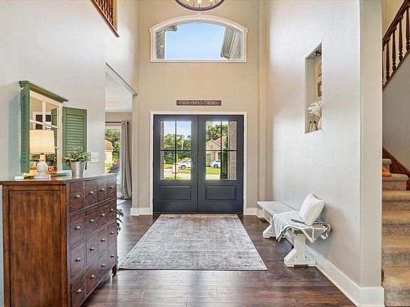 - Ceiling-9+, Cathedral Ceiling(s), Ceiling Fan(s), Walk-In Closet(s), Countertops-Solid Surf, Entrance Foyer, Kitchen Island, Natural Woodwork, Open Floorplan, Stand Up Shower, Tub/Shower Combination, Main Level Bedroom Suite, Formal Dining Room, Great Room, Custom Cabinetry