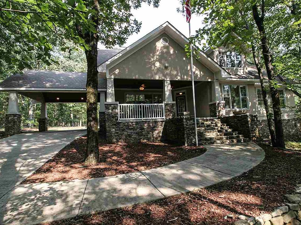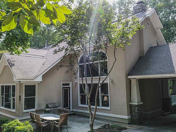 NEW PRICE! Spectacular Bungalow style home on a wooded 1 acre+ site atop Green Mtn. 4 Bedrooms each with its own Bath. Master Bedroom features his/hers walk-in closets, pass thru laundry and linen in master. Main level has new maple hardwood and tile floors, outside air vented masonry stacked stone fireplace. Finished beadboard ceiling accents in vaulted Sunroom, Kitchen, Porch, and Porte Cochere. New paint throughout. 2 story open Great Room and Balcony. 3 AC zoned units e/w digital thermostats. 3 car garage with extended heated workshop. Garage water fountain, hot and cold water supply. All Baths insulated. Architectural Shingles, Pella Windows, abundant privacy and walking trails.