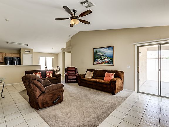 ~~ Location, Location, Location ~~ Popular 1530 SQ FT floor plan located in the Rancho El Mirage subdivision. This home has 3 bedrooms, plus a den, vaulted ceilings, great room, open kitchen with breakfast bar, eat in kitchen, black appliances, pantry, split master bedroom with master bathroom which has a tub/shower combo, nice size closet, only one sink in master but has a vanity area, extra shelving in master bathroom and bedroom area. Tile in the the right places including hallways, ceiling fans, inside laundry, covered patio, large backyard. Home is being sold at a great price and as is due to exterior paint is needed per hoa.