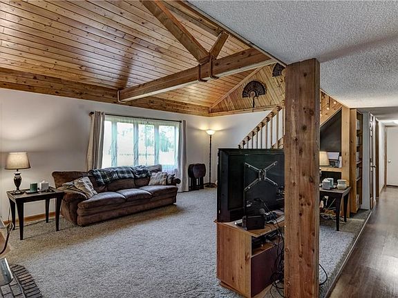 Open and unique floor plan home located on 1/2 acre lot in Lake Hallie. One level living with everything you need; 3 bedrooms and 2 full baths. Great upstairs loft with plenty of additional space. Updates include a remodeled kitchen, new roof in 2018, tankless water heater, storage shed in backyard, laminate floor on main level, updated laundry room. You will love the huge private backyard with mature trees, playset, and firepit area.