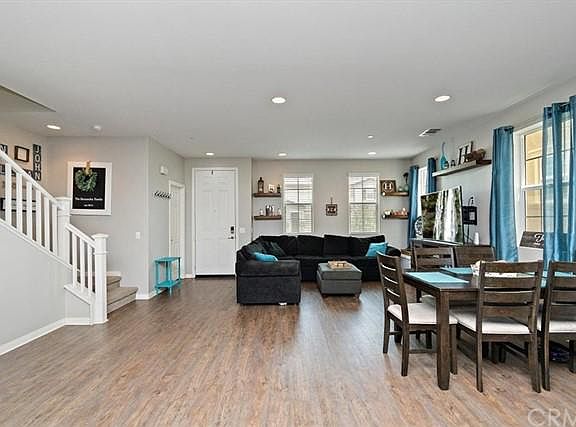 Welcome Home!! This gorgeous turn-key home is located in the community of The Lodge. This 1,993 sq. ft. 3 bd/3 ba is on a corner lot. Entering the front door you are greeted with spacious open floor plan and a large living room with beautiful luxury vinyl laminate flooring which is featured throughout. Large open kitchen with quartz counter tops, lots of cabinets, storage and walk-in pantry. You can enjoy breakfast at the kitchen island that has a breakfast bar area. You also can enjoy the formal dining room that is open to the kitchen. Neutral colors of paint, carpet and flooring in this home. Recessed lighting, upgraded doors and ceiling fans throughout compliment this home. The Smart thermostat operates the air conditioning upstairs and downstairs separately. Separate guest bathroom located downstairs. Upstairs you will walk into loft/bonus room area-perfect for the kids. Moving onward you enter into a large master bedroom with a walk in closet. Master bathroom is spacious with double vanity, quartz counter tops and laminate flooring. Spacious secondary bedrooms with a separate full bathroom that has a bathtub and shower combo and laminate flooring. Separate upstairs laundry room with laminate flooring. Going outside into the backyard you are greeted with a concrete patio and grass area perfect for entertaining. Also included is a tankless water heater and this home has a solar panel system that is 7.15 kwp and is negotiable. No electricity bill here! Lots of amenities in this beautiful community include a clubhouse, Olympic size pools, fireplace with a seating area, BBQ areas, park areas, picnic area, dog park and gym/exercise room access. Plenty of parking for your quests. Located near freeway access, shopping and restaurants.