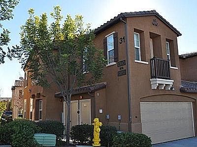 Upgraded 2 story end unit townhome with 3 bedrooms, loft and 2.5 baths. Downstairs features custom tile flooring with built in media cabinet in living room. Kitchen features granite counter tops, stainless steel appliances and dark wood cabinets which match media cabinet and bathroom cabinets. half bath downstairs and dining room with direct access to 2 car attached garage. 1 additional uncovered parking spot available. Garage has custom epoxy flooring with storage cabinets and shelving. Upstairs features 3 bedrooms, loft with shelving unit ( optional ) 2 full baths and laundry room. Washer, dryer and fridge included. Master bedroom has his and her closets one which is a walk in closet. Custom stone tile in master bath shower/ bath and dual vanity sinks. Romeo and Juliette balcony off master. Rent includes access to common area ammeneties which include, pool, jaccuzzi, BBQ's, Fitness center, basketball court, tennis court, playground and clubhouse. Walking distance to Canyon Crest Academy. Tenant responsible for all utilities with the exception of trash.Available 1 week from signing of lease. Please call for additional info or showing instructions. Additional deposit for approved pet.