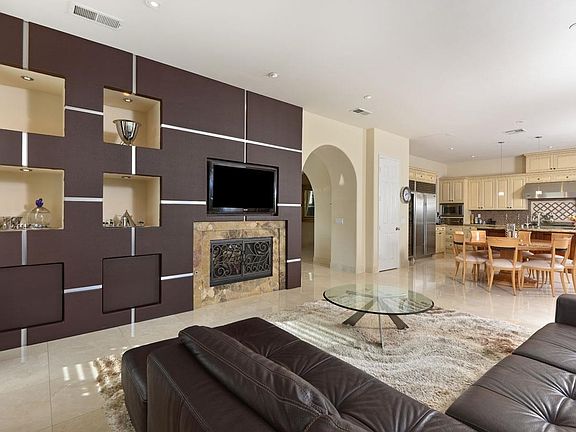 This impeccable 5BR/4.5BA home in Carmel Pointâs Vista Santa Barbara is truly a delight to behold. Past the double door formal entry youâll find sophistication abounds in every room. The main floor flooded with natural light from numerous windows is fitted with high ceilings oversized Crema Marfil tile crystal chandeliers two granite faced fireplaces and a fabulous ostrich leather built in wall unit in the family room. The spacious gourmet kitchen is a chefâs dream ..see Supplement....