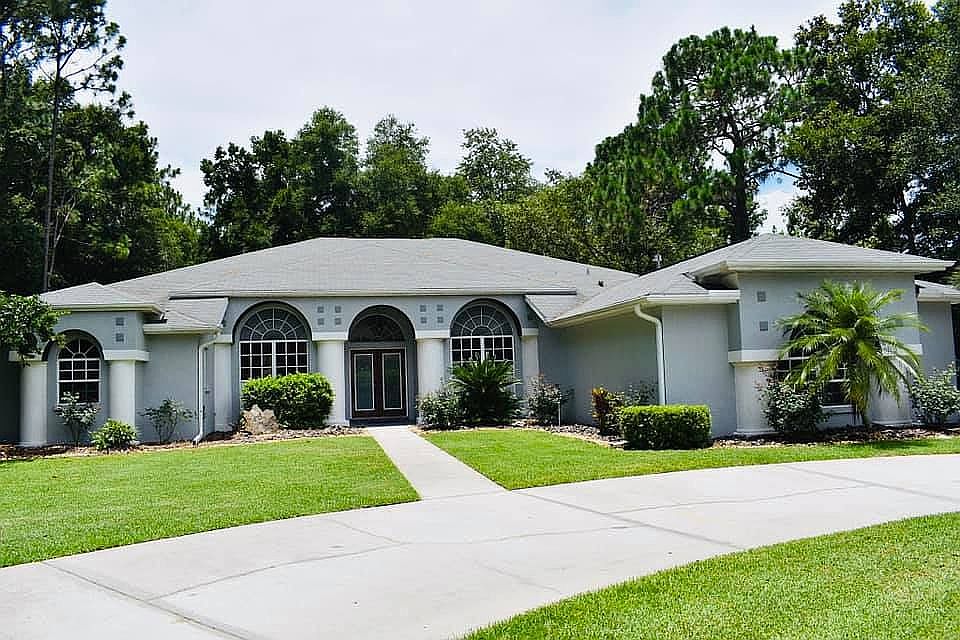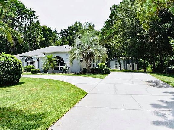 Remodeled 3/3/5 plus den with pool on 1.07 acres including new 30X30 detached garage in highly desired Dry Creek Estates on a dead end street with no HOA or CDD fees. NEW roof, AC, all appliances, hot water tank, level 3 granite, all flooring, all blinds, paint & trim, ceiling fans, shower heads, sprinkler system, garage door opener, all outdoor lighting, landscaping, wood ceiling on porch, fire pit, completely remodeled pool including diamond bright, pavers, tile, pool filter, salt system, screens and pool cleaner. Too many new items to list w lots of upgrades. Huge master bedroom with fireplace surrounded in Travertine tile and double door entry. Master bath has its own hot water tank and huge closet. Large bedrooms, fireplace in family room surrounded by granite, circular driveway, extremely private, outdoor kitchen, pool bath, fire pit with benches. Great water w no water bill and low electric bills. Property taxes $3200. Washer and dryer convey. HOUSEHOLD ITEMS, FURNITURE, RIDING MOWER, ANYTHING WE HAVE THAT'S NOT A PERSONAL ITEM IS NEGOTIABLE! By Appointment Only.