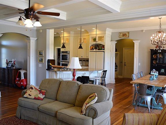Sometimes you just want it all. Sitting on 3 acres, this home has amazing features and upgrades everywhere. Custom built with a kitchen you dream about. Jenn Air Gas cook top with pot filler. Granite. Hand scrapped wood flooring. A custom multi level lit coffered ceiling in master bedroom with open beam coffered ceiling in living room. Very large master bedroom with beautiful views out to your pool with water features, slide and diving board. In Ground Trampoline. Upstairs you have your own theater.
